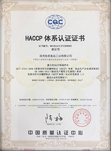 南充佳美于2008年按GB/T 27341-2009標準建立HACCP體系,同時取得HACCP 體系認證證書